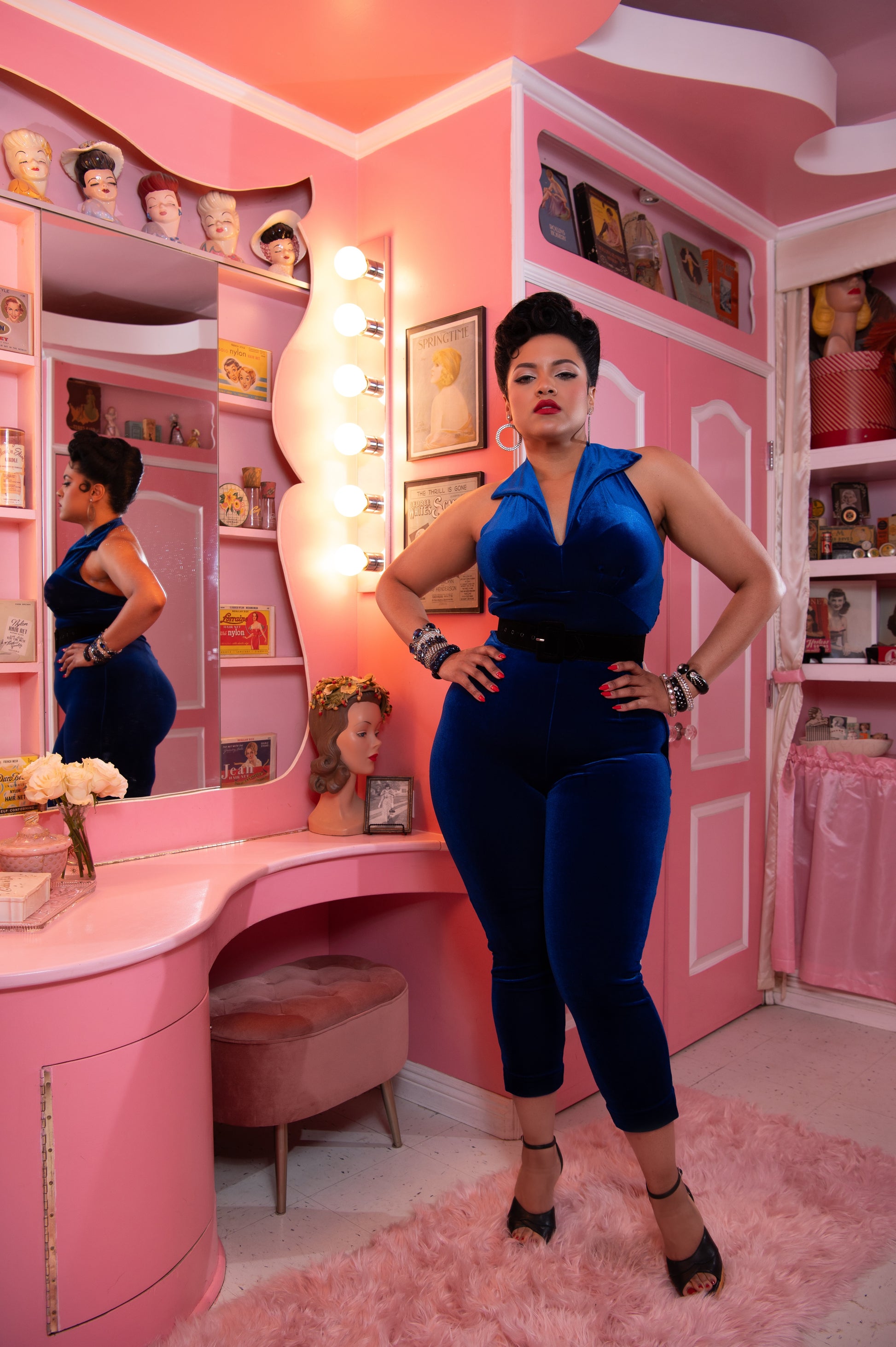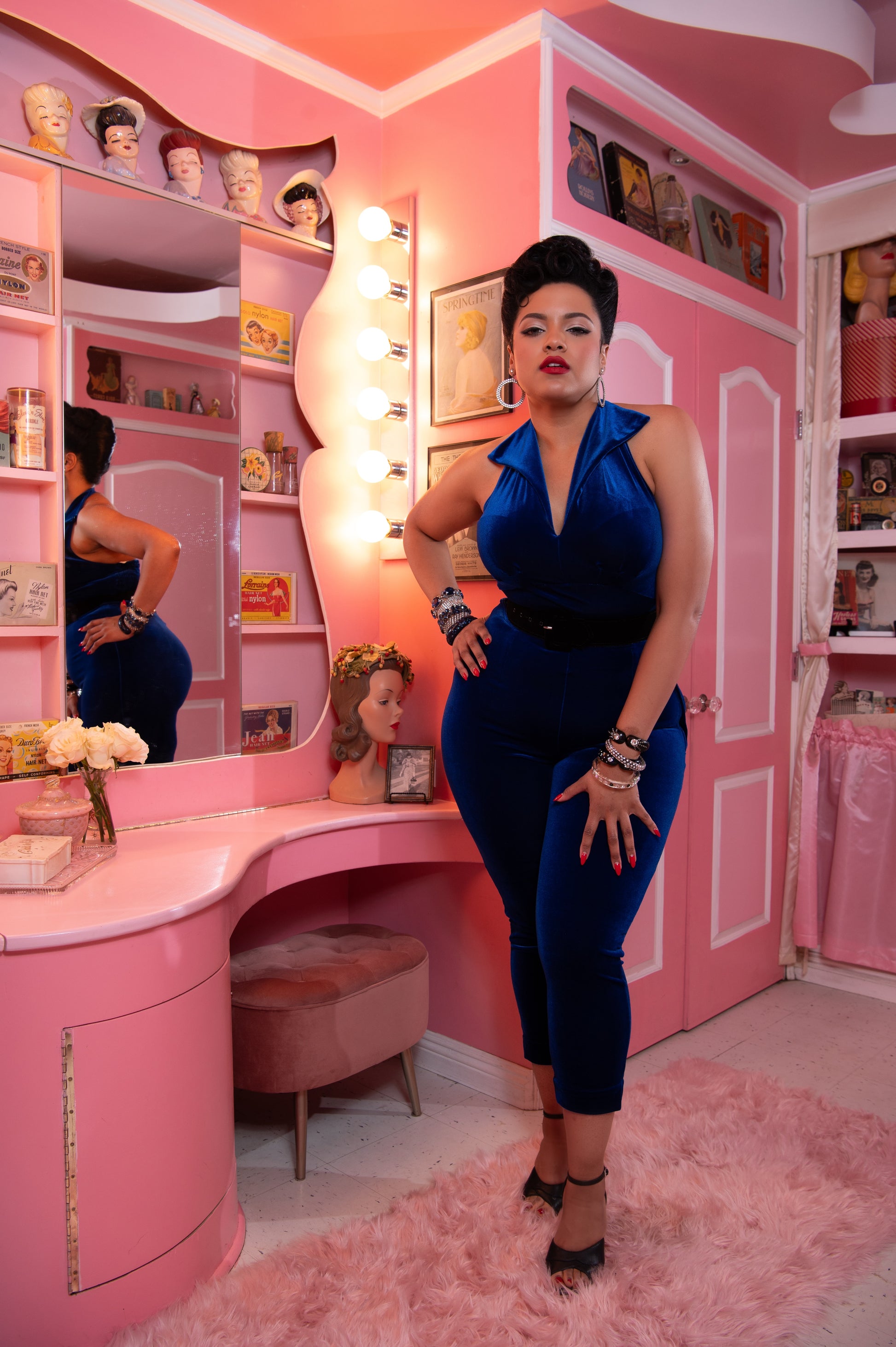 These pants are an essential piece for any pinup's wardrobe, featuring a slim and stylish cigarette pant style with an opening at the ankle. Their high-waisted fit is complimented by a side metal zipper, and the waist seam includes an interfacing for added structural support without sacrificing flexibility or stretch. Made from comfortable and stretchy velvet, these pants are a must-have. These pants have generous stretch (the belt does not).